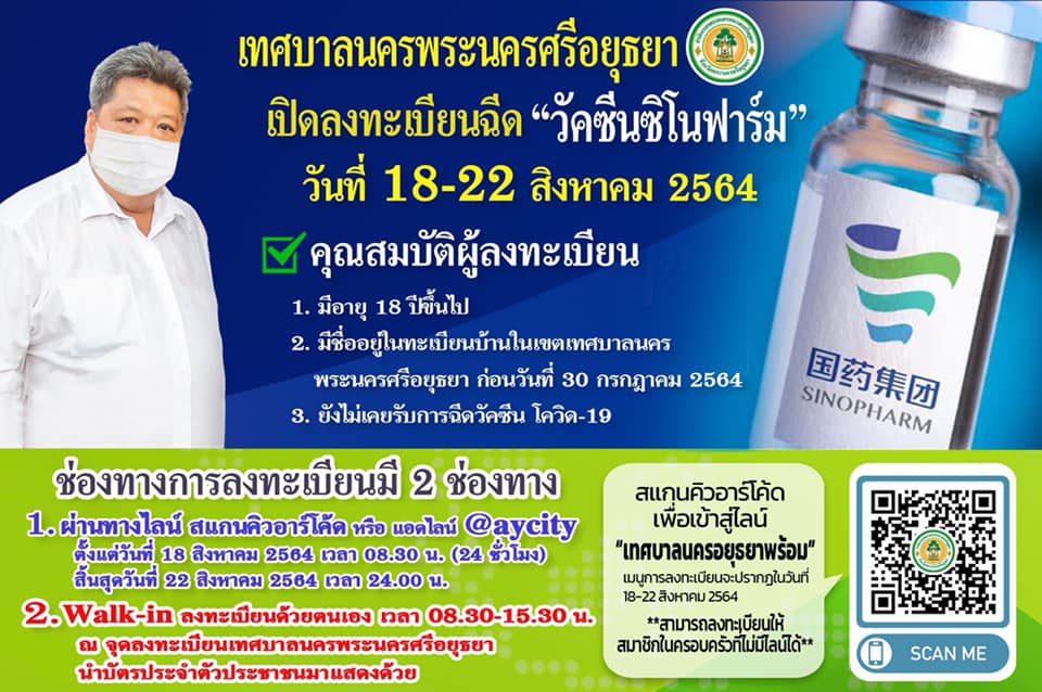 นครปฐม เปิดให้ ประชาชนทั่วไป ลงทะเบียนฉีดวัคซีน ทางเลือก ซิโนฟาร์ม 2 ช่องทาง ออนไลน์ หรือ ไปที่จุดบริการ